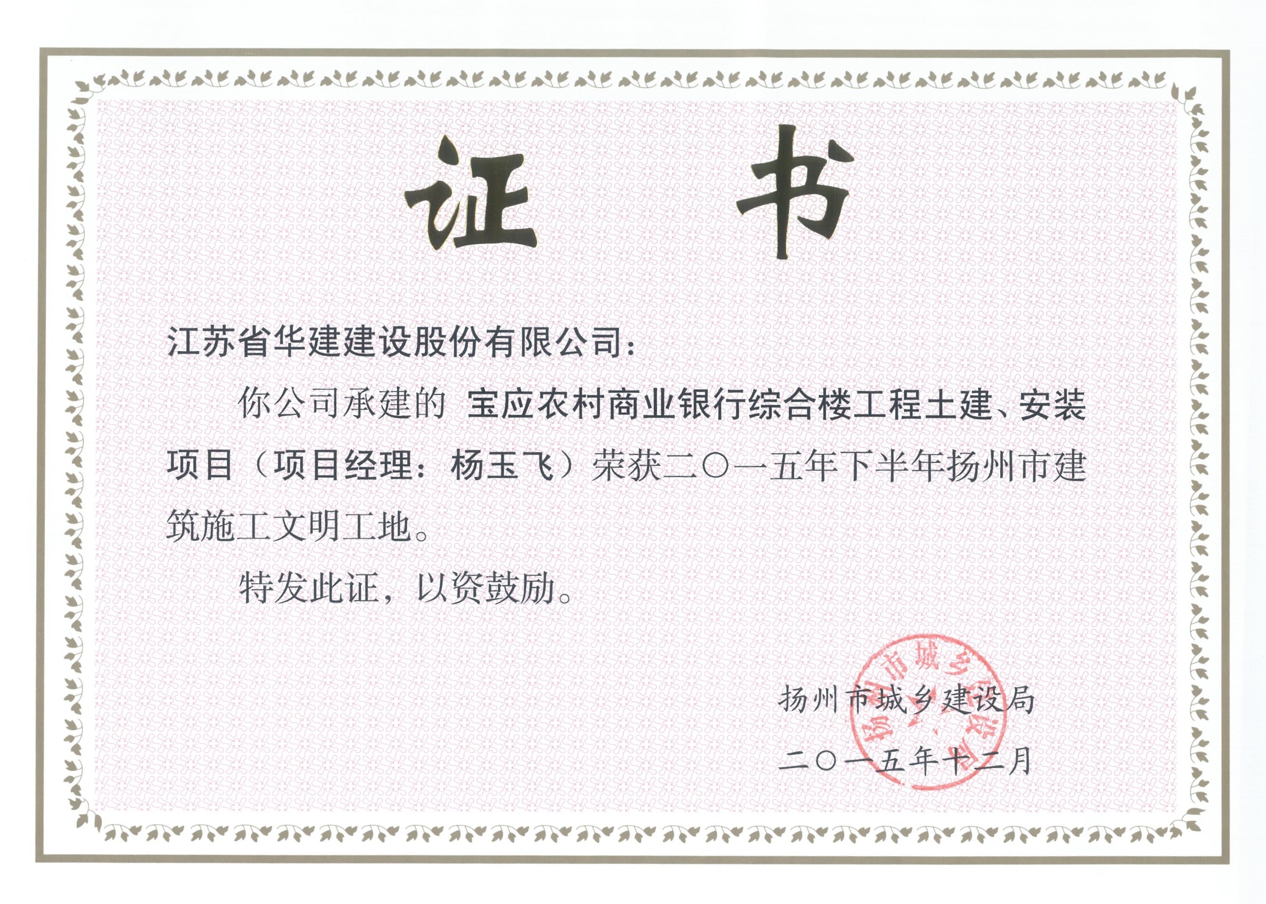省標準化文明示范工地——寶應農村商業銀行綜合樓