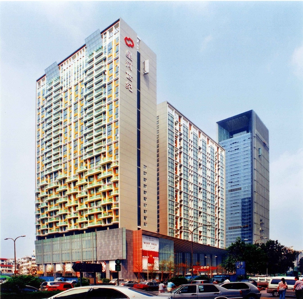 該工程位于深圳市福田區(qū)深南大道南與彩田路西交匯處,是深圳市中心區(qū)東門標(biāo)志性建筑。該工程一裙三塔,32-39層,高173.2米,總建筑面積156680平方米,是集辦公、商業(yè)、住宅為一體的綜合樓。