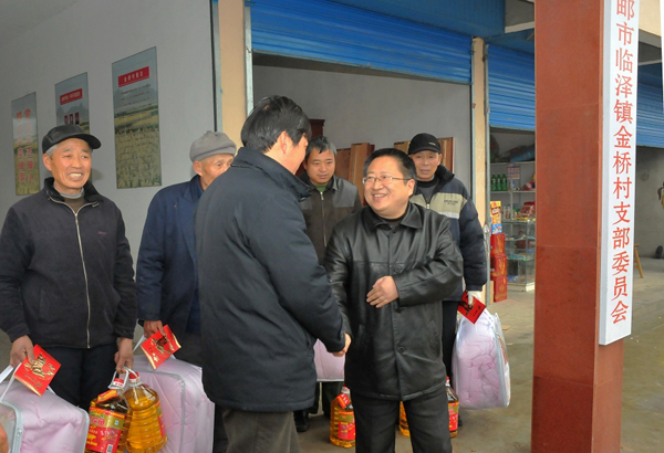 2月10日,公司副總經(jīng)理程杰一行冒雨赴公司對(duì)口扶貧的高郵臨澤鎮(zhèn)金橋村進(jìn)行走訪慰問。程總參觀了由我公司支持建成的金橋村村民服務(wù)中心,了解去年該村的基本情況和今年的發(fā)展打算,程總希望金橋村今后要在扶持特色產(chǎn)業(yè)上作文章,努力形成自力更生,自我造血的能力。隨后,程總看望了當(dāng)?shù)氐褪杖胴毨мr(nóng)戶,給他們送去節(jié)日的問候和慰問品。