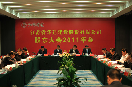 另訊  4月30日下午,江蘇華建房地產開發有限公司股東會2011年會在泰州召開。宗有農同志主持會議,與會股東代表聽取和審議了華房總經理吳士茂的工作報告和總會計師李長棟所作的財務報告及股利分配方案。會上陸金龍董事長詳細分析了當前全國房地產市場的形勢,并提出下一階段房地產開發總體要求。