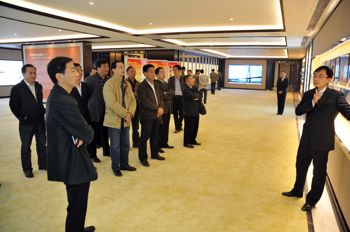 江蘇華建企業展示中心正式啟用 時間:2013-11-08 3841 11月8日,江蘇華建企業展示中心舉行揭牌儀式正式啟用,標志著華建對外形象的展示又多了一個全面展示的窗口。公司董事長陸金龍為展示中心揭牌并致辭,公司在揚領導吳士茂、程杰、錢啟明、王宏、陸俊等出席儀式。 企業展示中心位于揚州繁華地段的建設大廈,總面積近2000平米,企業展示區以文字、圖片、視頻等形式,從不同視角全面、直觀、有效地展現了公司發展歷程、區域公司風采、多元發展、精品工程、企業文化、企業榮譽等內容。展示中心同時配有小型會議室和接待場所,可安排公司一般性的商務談判和對外接待。