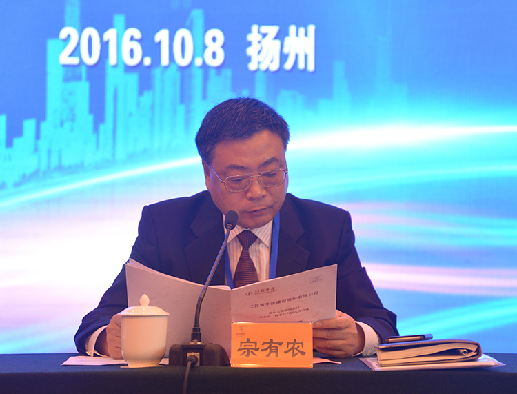 10月8日上午,公司股東大會臨時會議、董事會監事會六屆八次會議、董事會六屆九次會議在揚州會議中心召開。華建股東單位代表,董事會、監事會成員,各區域公司和各分支機構負責人、其他列席人員共50余人參加會議,宗有農總經理主持會議。