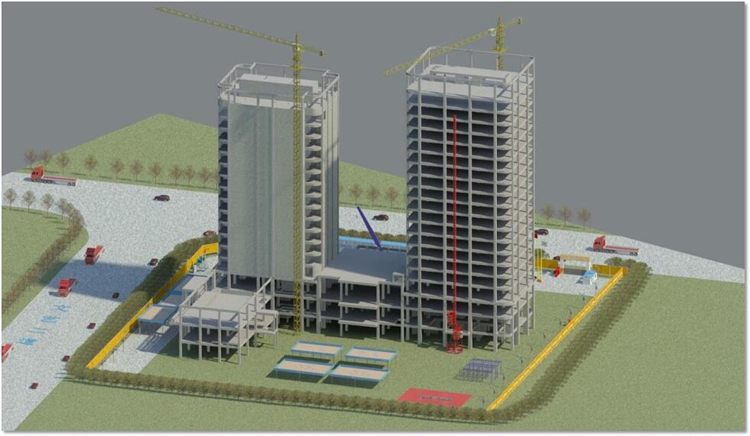 橫琴隆義廣場項目位于珠海橫琴自貿區,工程造價為16000萬元,建筑面積約60000平方米,由1棟17層和1棟20層的塔樓組成,最大高度為85.8米,合同工期730天。建成之后將成為橫琴島上的高檔酒店和寫字樓。該工程通過運用BIM技術,建立項目BIM設計模型,完成了多專業碰撞檢查、模型二次深化設計、凈高分析工作。此外,公司在該項目施工中還基于高精度BIM施工模型做到了施工臨時場地布置、BIM樣板引路、機電管線綜合優化、鋁合金模板預拼裝、腳手架系統深化設計、動態可視化交底、施工進度計劃及造價控制等工作的優化管理,項目結合二維碼的協同管理云平臺,實現了“工廠預制加工”“掃碼組裝”“二維碼安全技術交底”“設備信息錄入”等智能化操作。