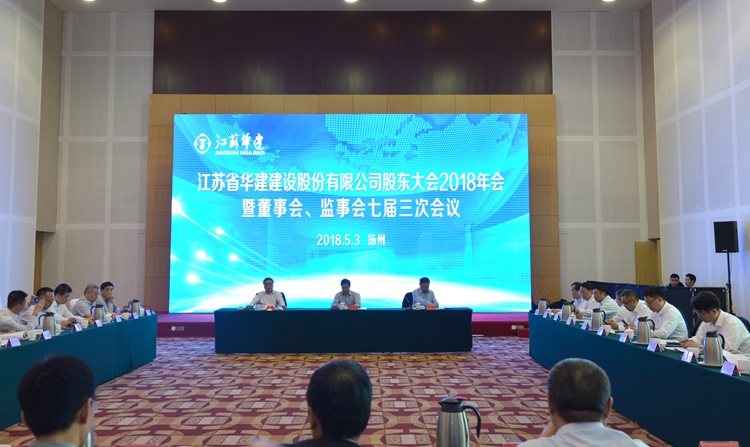 53日下午,江蘇華建股東大會(huì)2018年會(huì)暨董事會(huì)監(jiān)事會(huì)七屆三次會(huì)議在揚(yáng)州召開(kāi)。公司股東單位代表和董事、監(jiān)事出席會(huì)議,公司高級(jí)管理人員、各分支機(jī)構(gòu)和總部各部室負(fù)責(zé)人、律師團(tuán)律師列席會(huì)議,王宏董事長(zhǎng)主持會(huì)議,揚(yáng)州市政府副秘書(shū)長(zhǎng)林寶榮出席會(huì)議并致辭。