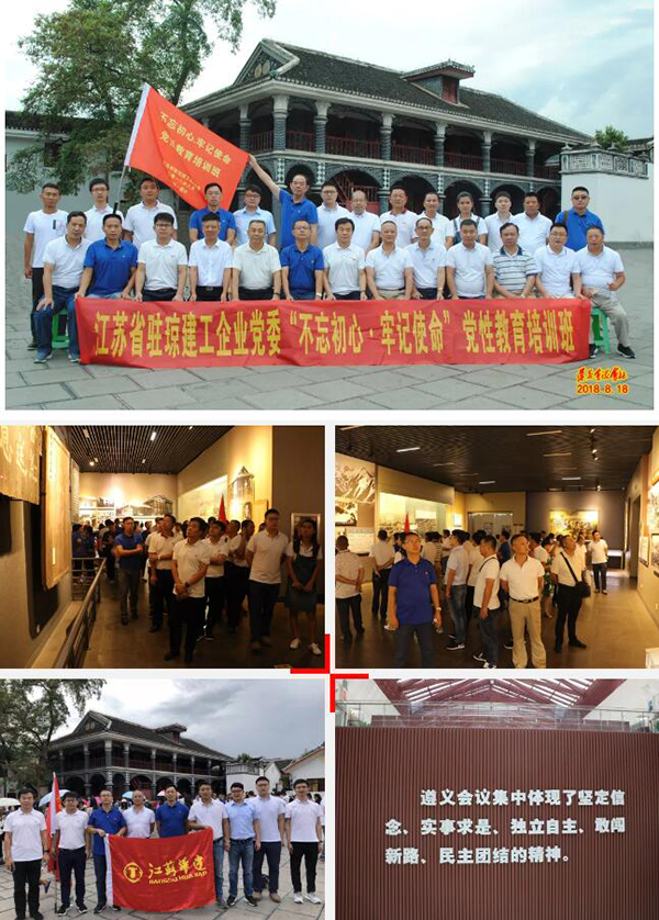為深入學(xué)習(xí)貫徹黨的十九大會(huì)議精神,進(jìn)一步加強(qiáng)黨員理想信念教育,弘揚(yáng)傳承紅色革命精神。8月17日至20日,江蘇省駐瓊建工企業(yè)黨委、華建海南黨總支根據(jù)年度黨建工作計(jì)劃和部署,組織27名黨員干部赴貴開展以“不忘初心·牢記使命”為主題的第一批黨員培訓(xùn)班,接受了一次深刻的紅色文化教育。