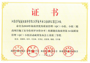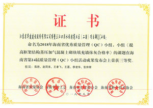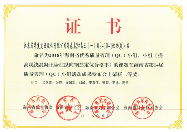 日前,海南省質量協會公布了2018年海南省“優秀質量管理(QC)小組”活動成果評比結果,海南分公司共有5項成果受到表彰。其中,海花島2#島三()2-10-1地塊QC小組榮獲二等獎,博鰲三江口濱水旅游商業區(二期)項目部QC小組、三亞婦幼保健院整體搬遷(新址)建設項目QC小組、恒大海上帝景QC小組、華盛中央公園國際公寓QC小組榮獲三等獎。