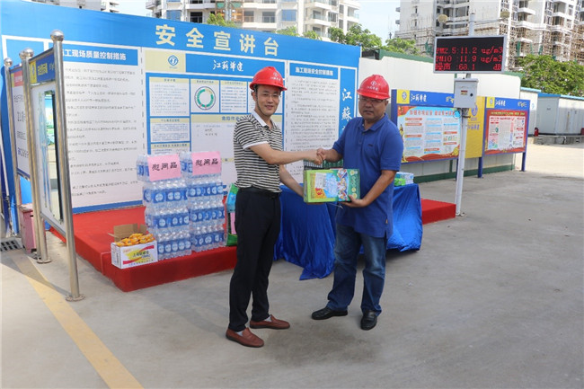 公司工會赴工地進行高溫慰問 時間:2019-06-11 2610 6月10日上午,海南分公司黨總支副書記、工會主席郁遠帶隊走訪慰問海口恒大·美麗沙項目部,檢查項目安全生產情況,并給奮戰在高溫、露天生產第一線的員工送去涼茶、綠豆、人丹等防暑用品,送去企業及工會組織的關懷。 在詳細詢問了工程推進情況和一線職工的工作、生活情況后,郁遠書記囑咐項目負責人要安排好施工現場人員的作息時間,做好降溫消暑保護措施。并叮囑一線的職工要注意人身與施工安全,合理安排工作時間,做到勞逸結合,確保高溫期的安全生產。(辦公室)