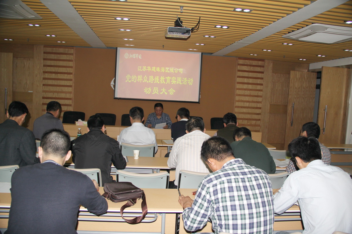 2014年3月25日下午,江蘇華建珠海區(qū)域公司黨委及機關支部召開黨的群眾路線教育實踐活動動員大會,在珠各工程處、直管項目部負責人和公司機關全體人員參加。珠海區(qū)域公司黨委書記、機關支部書記繆國樞主持會議并作了動員講話。會議傳達了《揚州建工控股公司黨委關于深入開展黨的群眾路線教育實踐活動的實施方案》。并結(jié)合“四風”建設征求意見情況要求全體黨員和公司機關員工進行整改,以切實改進工作作風,提升精神風貌。