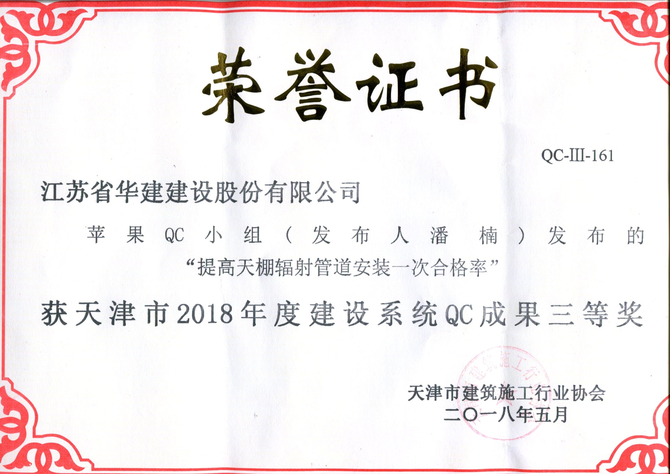 日前,北京公司有2項成果獲得省級表彰。蘋果QC小組“提高天棚輻射管道安裝一次合格率”榮獲天...