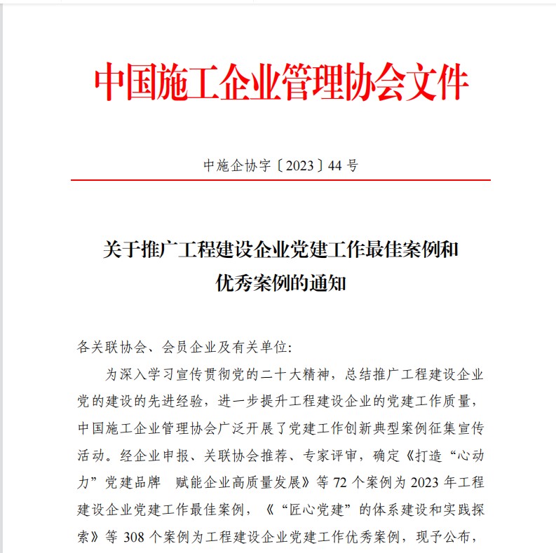 6月2日,中國施工管理企業協會發布2023年度全國工程建設企業黨建工作創新典型,江蘇華建申...