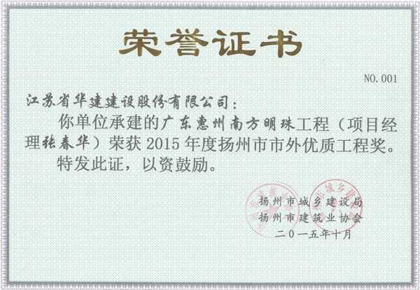 2015年揚(yáng)州市市外優(yōu)質(zhì)工程獎(jiǎng)2014年度市外瓊花杯-廣東惠州萬麓湖一期2013年度市外瓊...