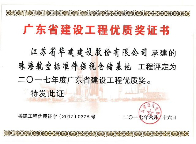 近日,廣東省建筑業協會發文公布2017年度廣東省建設工程優質獎名單,我司承建的珠海航空標準...