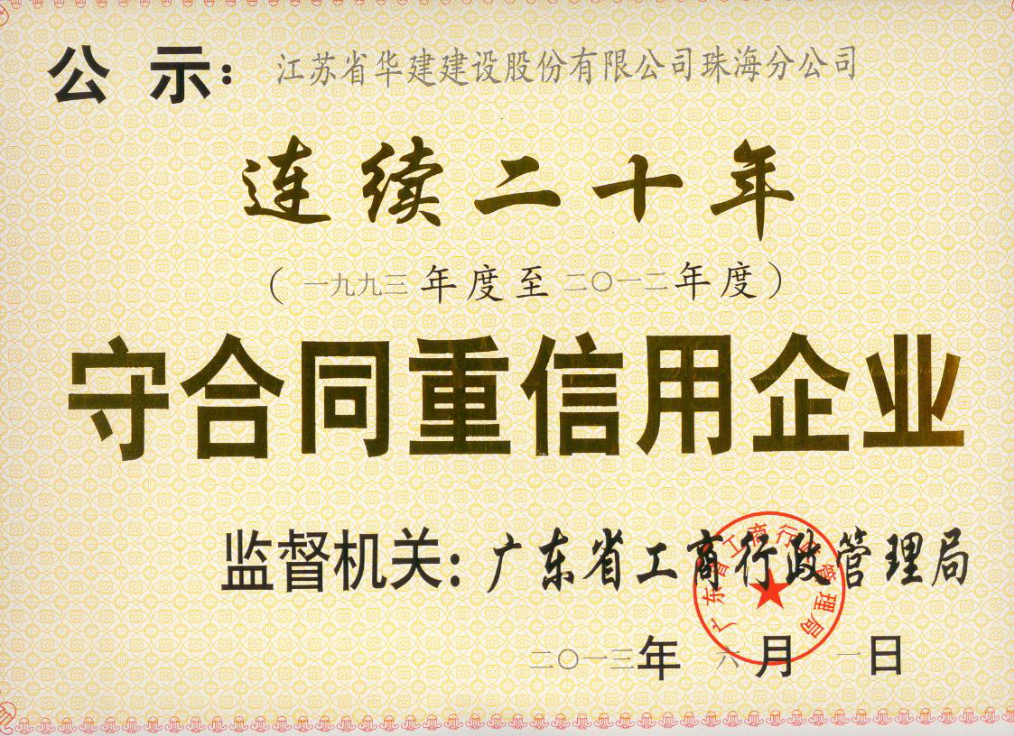 2013廣東省連續(xù)二十年守合同重信用企業(yè)