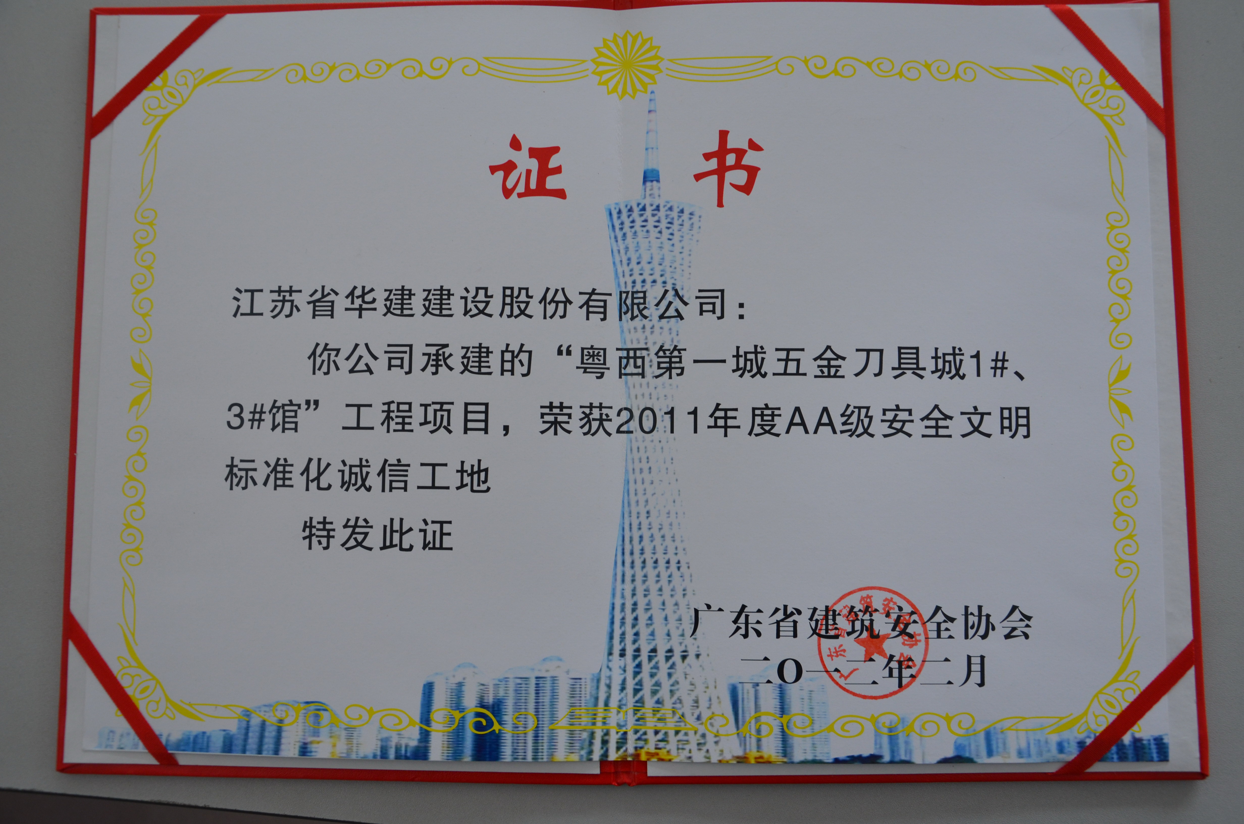 AAA級安全文明標準化工地,是由中國建筑業協會建筑安全與機械分會(原建筑安全分會)實施評選的獎項,是安全文明施工方面的最高獎項。 截止2020年末,江蘇華建共計10項工程入選此獎項。
