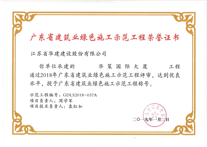 華策國際大廈獲2018廣東省建筑業(yè)綠色施工示范工程