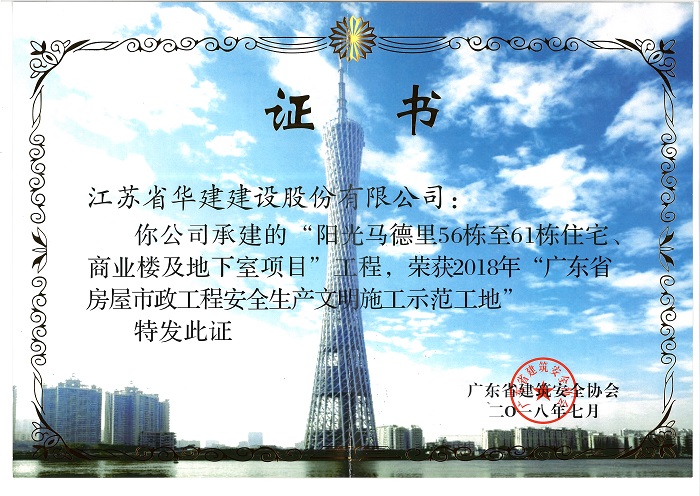 陽光馬德里獲2018年廣東省房屋市政工程安全生產(chǎn)文明施工示范...