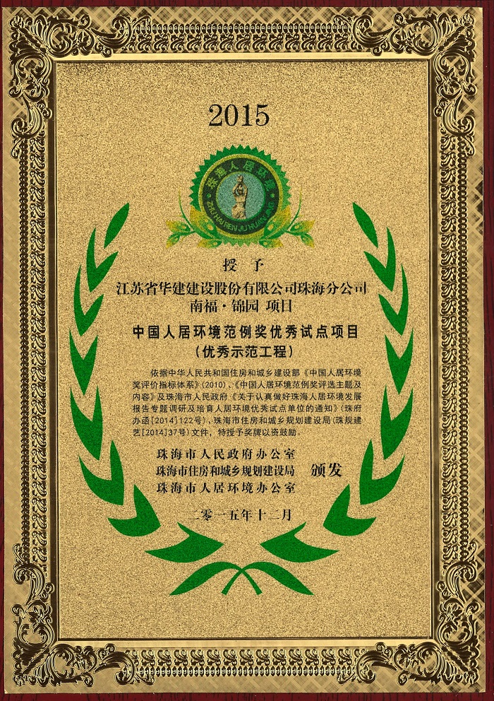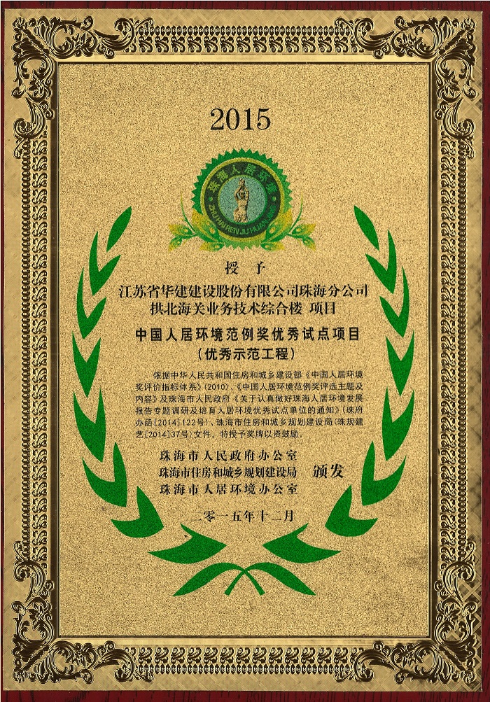 珠海市人居環境建設突出貢獻單位(優秀建筑施工企業)