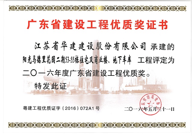 2016年度陽光馬德里53-55棟建設工程廣東省優質獎
