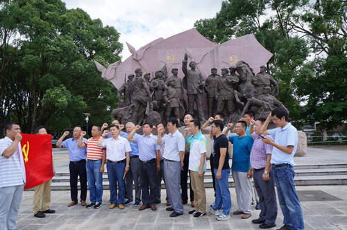 上海分公司黨總支組織開展“紅色之旅”教育 時間:2016-08-16 4269 8月12日,上海分公司黨總支組織部分黨員干部和入黨積極分子共18人,赴愛國主義教育基地福建古田開展“促兩學(xué)一做,走紅色之旅”教育活動,在“主席園”向毛主席像敬獻(xiàn)花籃,在“豐碑軍魂”雕像前面對黨旗重溫入黨誓詞,還仔細(xì)參觀古田會議地址和紀(jì)念館,回顧緬懷了老一輩無產(chǎn)階級革命家的不朽事跡。大家牢記“古田會議永放光芒”精神,紛紛表示:“不忘初心,繼續(xù)前行”。