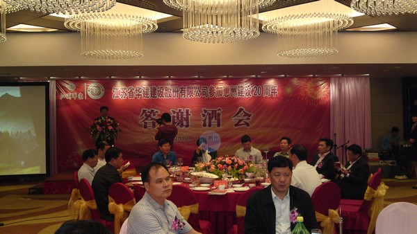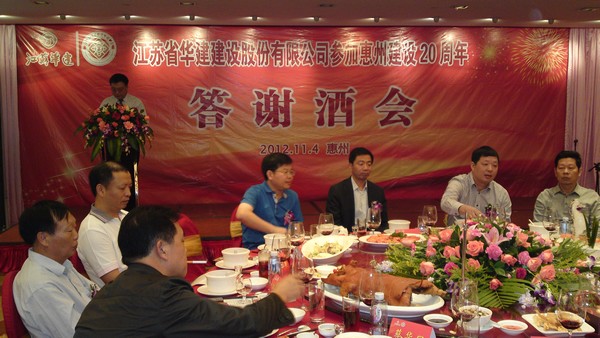 公司在惠隆重召開參加惠州建設20周年慶典暨答謝酒會 時間:2012-11-06 4577 公司在惠隆重召開 參加惠州建設20周年慶典暨答謝酒會 11月4日,公司在惠州凱賓斯基酒店王子飯店隆重召開參加惠州建設20周年慶典暨答謝酒會,公司副董事長、總經理宗有農主持酒會并作開場致辭。惠州市有關政府部門、部分合作方企業的負責人,華建聯盟成員單位負責人,公司董事、監事和高管等130余人出席慶典。惠州公司總經理華恒榮介紹了公司參加惠州建設20年的有關情況。惠州市工商聯主席、公司戰略合作伙伴恒宇實業集團公司董事長楊滿芳代表合作方發言,惠州市住房和城鄉規劃建設局副局長陳訓政代表政府主管部門致辭,分別對江蘇華建進駐惠州施工、參加惠州建設20周年表示祝賀。公司董事長陸金龍代表公司總部對惠州市有關政府部門、相關合作方和社會各界人士給予公司的關心和支持表示誠摯的感謝,并表達了進一步加大支持力度、加強戰略合作、加快科學發展的意愿。 (峰年 文/圖)