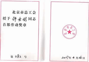 2003年,許世明所在的“當代城市家園外墻保溫工程”質量管理小組被江蘇省建設廳授予江蘇省工程建設優秀質量管理小組;當代城市家園、中科院與清華大學(清楓華景園)、鳳凰城三期項目獲江蘇省建筑業新技術應用示范工程;他本人參加編制的《聚苯保溫板與混凝土現澆復合外墻施工工法》被國家建設部批準為2006年度國家級施工工法,在全國建筑行業中推廣;該同志編制的《插接栓式大模內置現澆外墻外保溫施工工法》被江蘇省建管局批準為2003年度江蘇省級施工工法,填補了省內空白,在全省建筑系統中推廣。