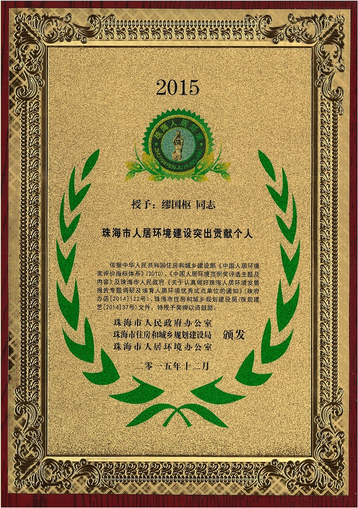公司榮獲珠海市人居環境建設突出貢獻單位等四項表彰 時間:2015-12-22 4579 近日,珠海公司被珠海市人民政府辦公室、珠海市住房和城鄉規劃建設局和珠海市人居環境辦公室聯合表彰為珠海市人居環境建設突出貢獻單位(優秀建筑施工企業),繆國樞總經理被授予珠海市人居環境建設突出貢獻個人稱號,由我公司承建的拱北海關業務技術綜合樓及南福·錦園項目榮獲中國人居環境范例獎優秀試點項目(優秀示范工程)。