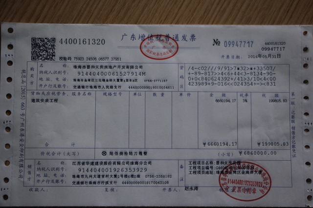 珠海區(qū)域公司第一張增值稅發(fā)票成功開具 時間:2016-06-01 3058 建筑行業(yè)“營改增”自5月1日起正式實施,公司領導高度重視“營改增”工作,先后完成了稅控設備軟硬件更新、數(shù)次的“營改增”知識培訓及交流會,并在主管國稅局完成了有關一般納稅人認定、增值稅發(fā)票額度調整、公司老項目備案等工作。 5月31日,財務處成功開具了第一張增值稅普通發(fā)票,此票為公司第五項目部承擔施工任務的晉和天慶花園總承包工程使用,走出了公司“營改增”工作的堅實一步。