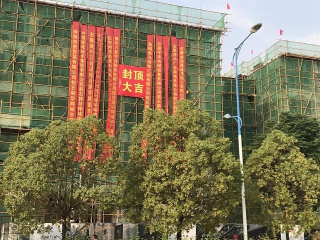 公司首個在滇項目——華輝城市廣場順利封頂 時間:2017-05-07 3265 5月6日,公司首個在滇項目——云南石屏縣華輝城市廣場舉行主體結構封頂儀式。重慶分公司總經理嚴正濤出席儀式。 華輝城市廣場項目位于石屏縣新城核心中央地段,為該縣城的“CBD”。整個建筑面積為18萬平方米,地上面積為13.4萬㎡,地下4.5萬平方米。其中一期工程建筑面積為93843.78平方米,承包范圍土建、水電、消防、門窗、室外園林綠化等工程(即除電梯工程外),一期主要以商業開發為主,項目結構為框架,以3層結構為主,預計2017年6月竣工。
