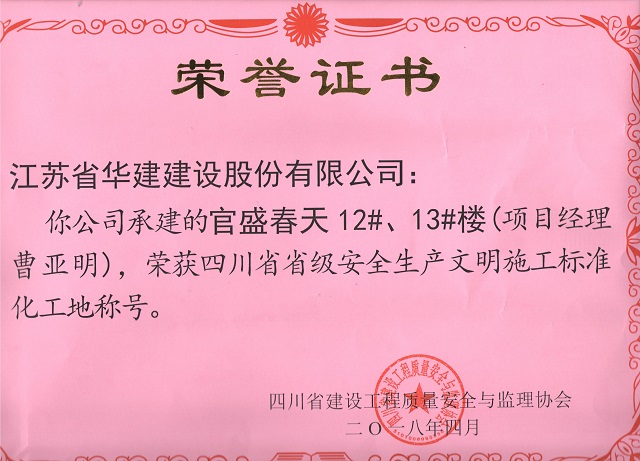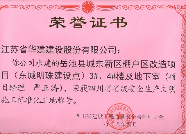 重慶分公司2項目獲評“四川省安全生產文明施工標準化工地” 時間:2018-04-20 3198 4月18日,重慶分公司項目創優再獲新成果,公司承建的岳池縣城東新區棚戶區改造項目(東城明珠建設點)3#、4#及地下室、官盛春天12#、13#樓被四川省建設工程質量安全與監理協會評為“四川省省級安全生產文明施工標準化工地”。至此,重慶分公司獲省級標化工地獎項已達3項。