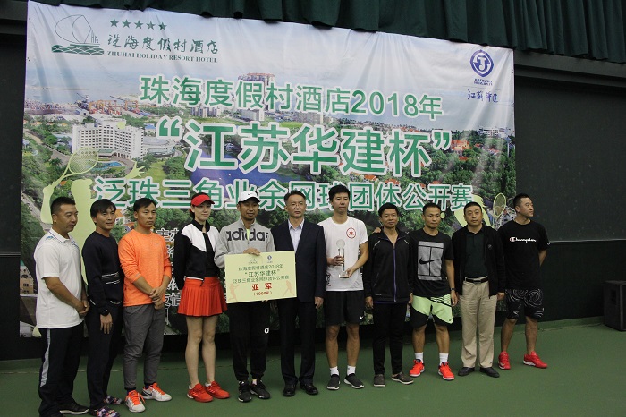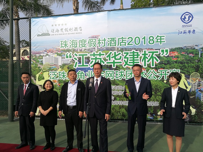 24-25日,2018年“江蘇華建杯”泛珠三角業(yè)余網(wǎng)球公開賽在珠海度假村網(wǎng)球場開賽,來自香港、澳門、廣州、佛山、深圳、珠海、中山、江門、肇慶的16支代表隊(duì)近200名男女高手在珠一決高下。他們代表著國內(nèi)業(yè)余網(wǎng)球較高水平。珠海區(qū)域公司總經(jīng)理呂方達(dá)和珠海度假村酒店董事長李增利共同為比賽開球,并在比賽結(jié)束后為獲獎(jiǎng)球隊(duì)頒獎(jiǎng)。
