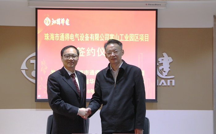 年11月22日,珠海市通得電氣設備有限公司與我公司就通得電氣富山工業園區項目舉行簽約儀式,通得電氣董事長黃建成與江蘇華建珠海區域公司總經理呂方達分別代表雙方簽訂《建設工程施工合同》。通得電氣是一家專業從事微電機及其配件的研發、生產、銷售和服務的綜合型集團公司,是國際知名家電制造商的微電機核心供應商。