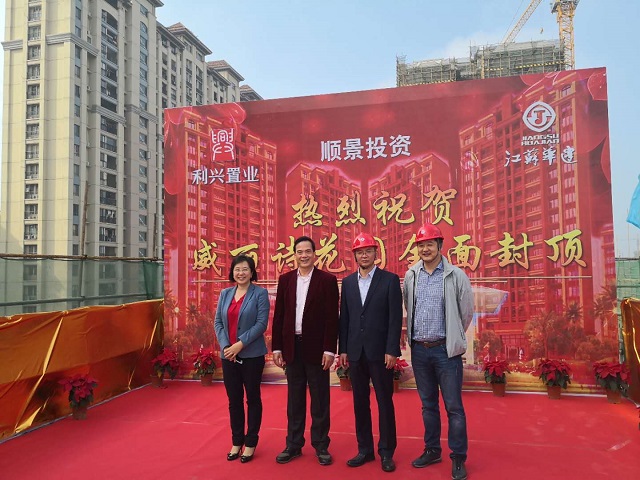 陽江威麗詩花園2期項目全面提前封頂 時間:2019-01-15 2688 2019年1月14日,第一項目部承擔施工任務的陽江威麗詩花園2期項目提前60天實現主體結構全面封頂。珠海利騰集團董事長黃金紅、總經理譚劍云,江蘇華建珠海區域公司總經理呂方達等參加封頂儀式。 威麗詩花園2期8~10棟住宅及地下室、12~15棟住宅及地下室、16棟住宅及地下室(含商業裙樓)、17~18棟住宅及地下室、19棟住宅及地下室(含商業裙樓)土建及水電安裝工程。該工程含商住樓共11棟,其中地下室建筑面積約34378平方米、地上建筑面積約127468平方米,總建筑面積約161847平方米。